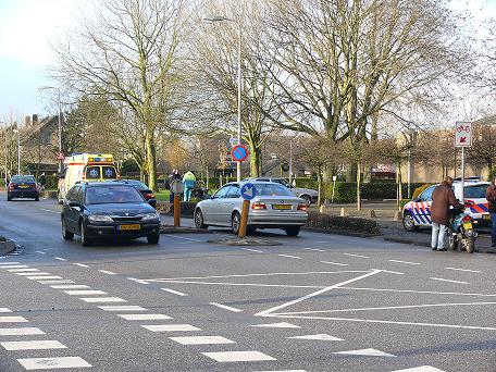De bestuurder van de auto, komend vanaf de middenwetering heeft ,waarschijnlijk, door de laagstaande zon, de bestuurder van de scooter over het hoofd gezien. Aan de schade van de scooter te zien heeft de autobestuurder deze vol aan de voorkant geraakt, waardoor de scooterbestuurder is gevallen.
